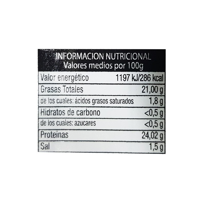 Ingredientes: Ventresca de atún claro en aceite de girasol y sal. Una vez abierto mantener refrigerado y consumir antes de cinco días.