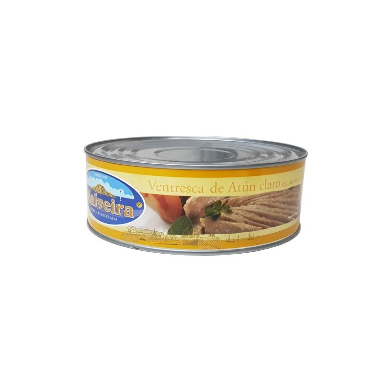 Conserva de pescado a base de ventresca de atún claro de primera calidad, con aceite de girasol. El atún claro es uno de los pescados más apreciados de las conservas de productos del mar y la ventresca su parte más exquisita. La ventresca es una parte del despiece del atún, ubicada en la parte inferior del pez, en la zona próxima a la cabeza. La denominación ventresca se debe precisamente a la cercanía que posee con respecto a la barriga del pescado. Las características peculiares de la ventresca que le dan su reputación de exquisitez son su proporción de grasa, que le aporta un sabor mucho más intenso, fino y delicado que el resto del pescado, y su carne de textura gelatinosa.