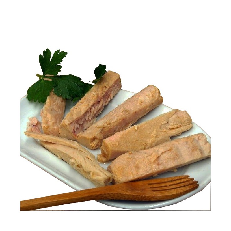 También conocido como Thunnus Alalunga o atún blanco. Su carne blanca, suave y textura más delicada lo han convertido en uno de los atunes más valorados de los comercializados. Elaborado con el mayor cuidado de manera artesanal, lomo a lomo, para que lleguen a tu mesa como recién pescados del mar. Extraídos de su entorno natural mediante prácticas de pesca sostenible, una forma de cuidar el ecosistema marino y ofrecerte la más alta calidad en cuanto a sabor y textura. Pruebalos y recordarás a qué sabe el mar.