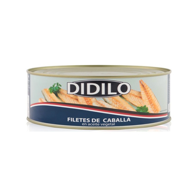 Filetes de caballa en conserva con aceite de girasol. Presentación en lata de 1 Kg.