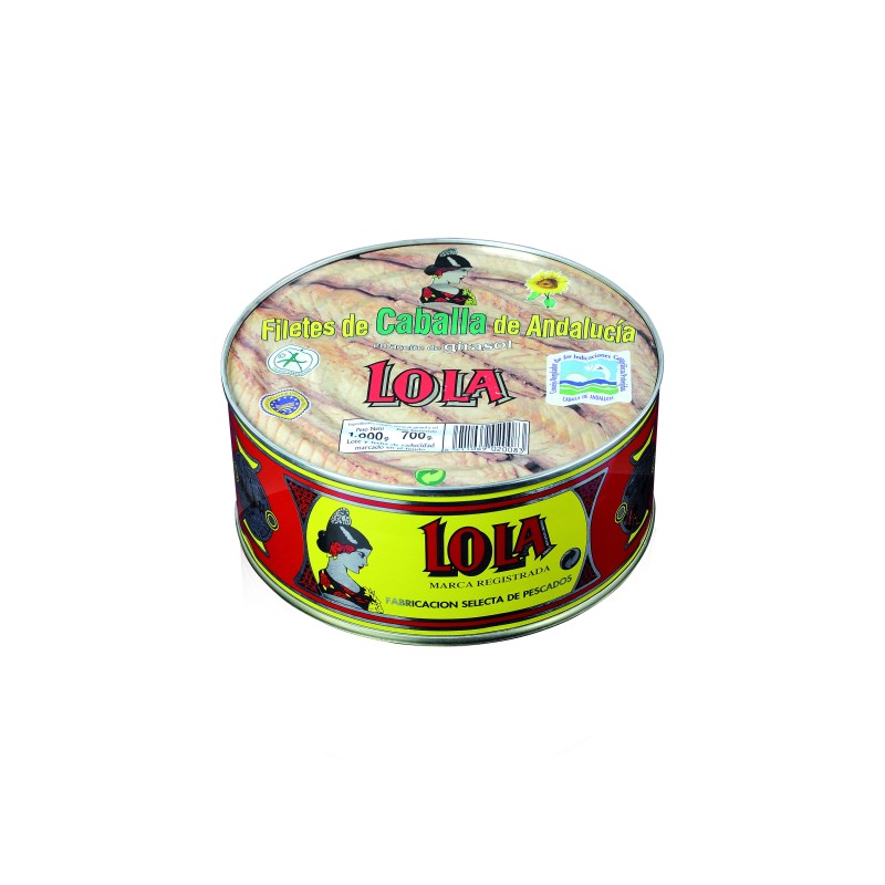 Deliciosos filetes de caballa de Andalucía en conserva con aceite de girasol. Denominación de Origen certificada. Indicación Geográfica Protegida. Calidad garantizada. Presentación en lata de 1 Kg.