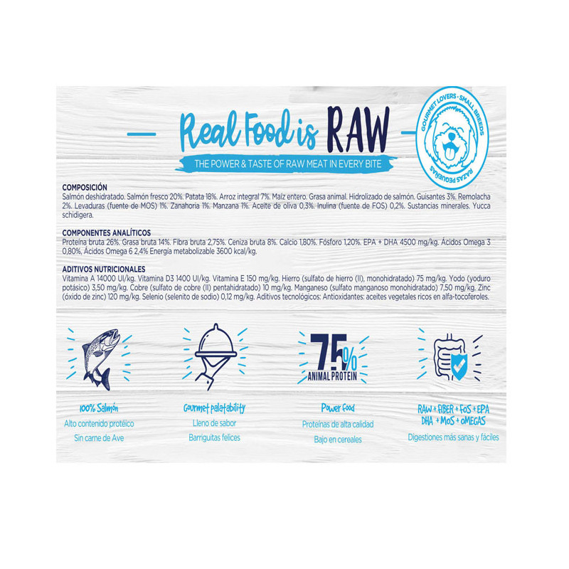 La variedad Adult Sensitive de Fresh Mediterranean Blend es una receta pensada especialmente para perros adultos de todas las razas. La receta incluye verdadero salmón y no contiene harina de carne o pescado. Sus principales ingredientes son salmón deshidratado, salmón fresco 20%, patata y arroz. Como ocurre con el resto de variedades de Fresh Mediterranean Blend es un pienso hipoalergénico y monoproteico.