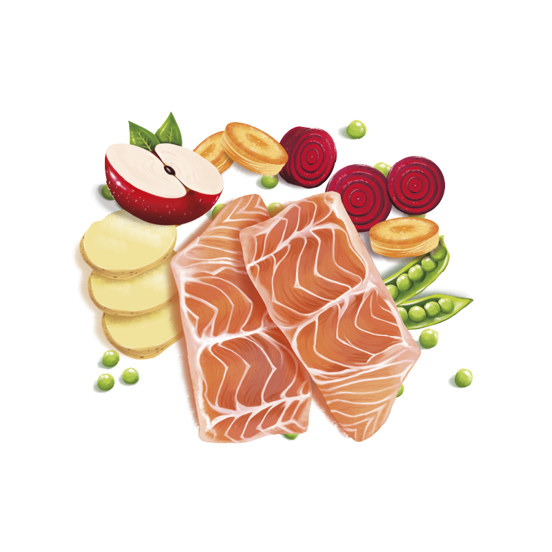 El salmón, ingrediente principal del Fresh Mediterranean Blend Adult Sensitive, es fuente rica en Omega 3 y 6, y esto hace que se reduzcan las alergias cutáneas, previene problemas de articulaciones y optimiza el sistema inmunológico. Los beneficios de elegir el pienso Adult Sensitive de Fresh Mediterranean Blend son inmumerables para la salud de tu perro, especialmente si tiene la piel y el estómago sensible.