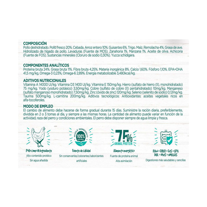 Al igual que ocurre con el resto de recetas Fresh Mediterranean Blend, se trata de un pienso hipoalergénico y monoproteico que propicia mejores digestiones a la vez que mima el paladar de tu perro.