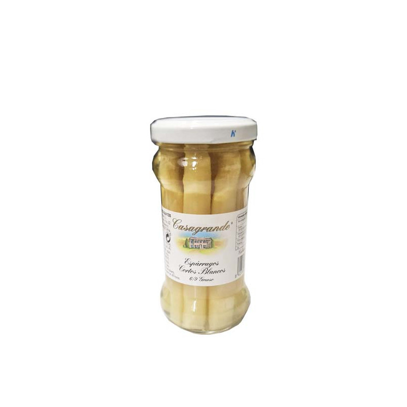 Espárragos blancos extra en tarro cristal de 212 ml. y 6/9 piezas. Gruesos. Muy tiernos. Ideales para elaborar ensaladas frescas por su bajo contenido calórico y su alto contenido en fibra.