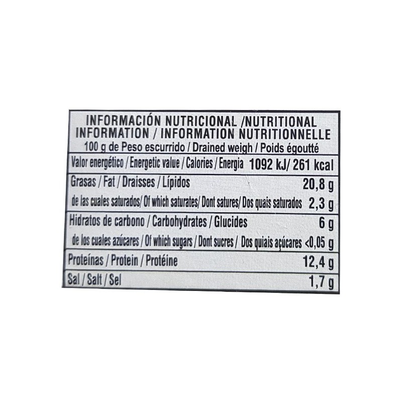 Ingredientes: mejillones, aceite de girasol, vinagre de vino, ajo, laurel, especias y sal.