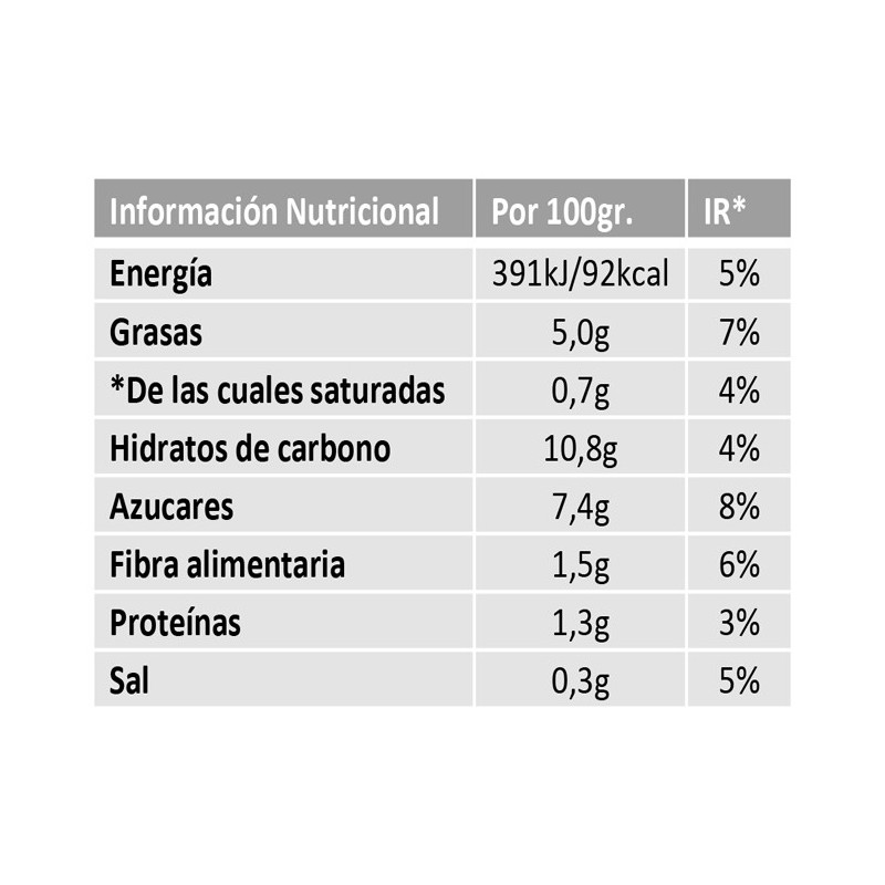 Tomate (94g para elaborar 100g de producto), hortalizas en proporción variable (35%) (cebolla, pimiento, calabacín y berenjena), aceite de oliva virgen extra (5%), azúcar y sal.