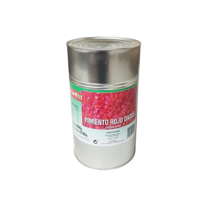 Dados de pimiento rojo calidad extra. Formato hostelería de 5 Kg.