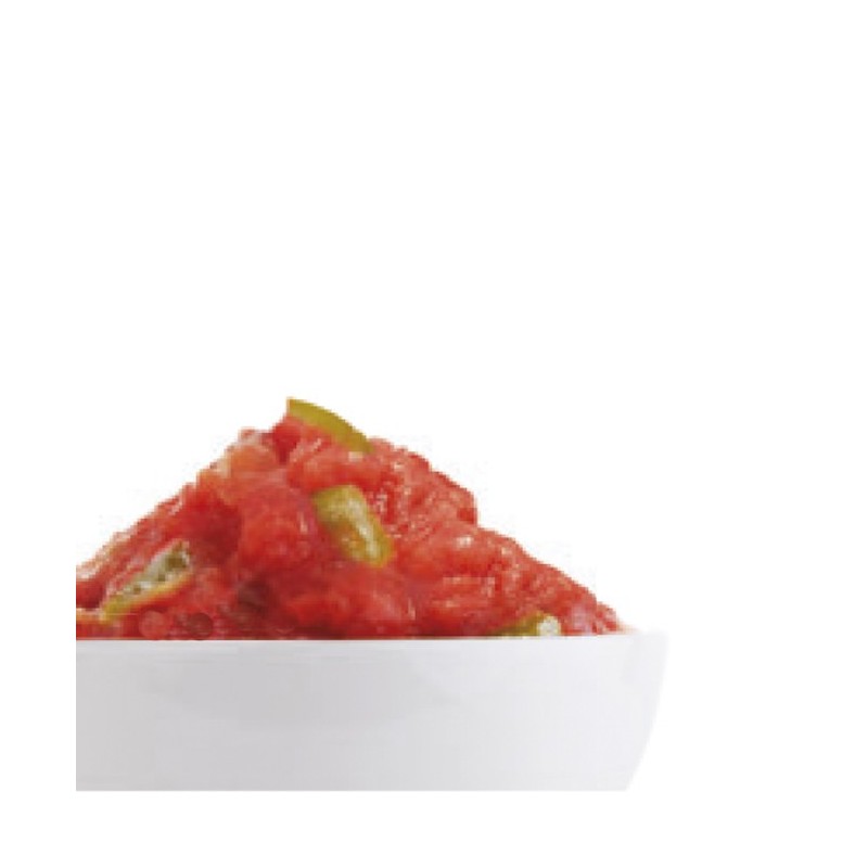 Tomate (88g. para elaborar 100g. de producto), Pimiento verde (17%), sal, almidón de maíz y acidulante (ácido cítrico).