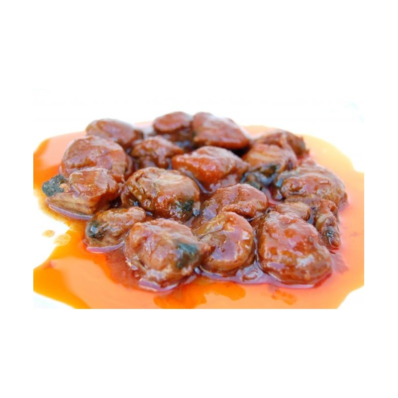 Una tapa clásica gallega elaborada artesanalmente con este marisco y una deliciosa salsa de vieira a base de aceite vegetal, tomate, cebolla, especias y sal, tal y como nos indican las tradicionales recetas gallegas. Un manjar con un intenso sabor a mar. Se trata de un alimento nutritivo y bajo en calorías. Contiene gran cantidad de proteínas y muy poca grasa, bajo en colesterol. Conserva de alta calidad.