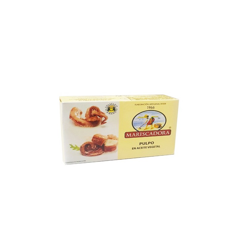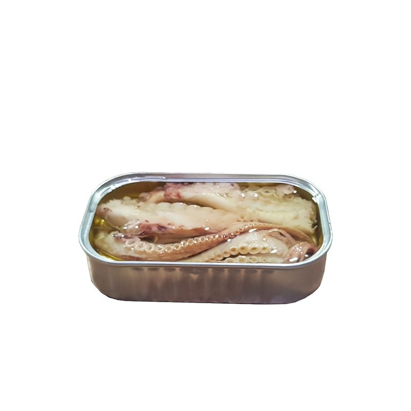 Tacos de Pulpo en aceite vegetal. Tapa clásica gallega ideal para aperitivos. Procedente de bancos de pesca de gran prestigio y cultivos reputados, con la mayor garantía de calidad. Producto elaborado de forma artesanal manteniendo así todas sus propiedades y su excelente sabor.