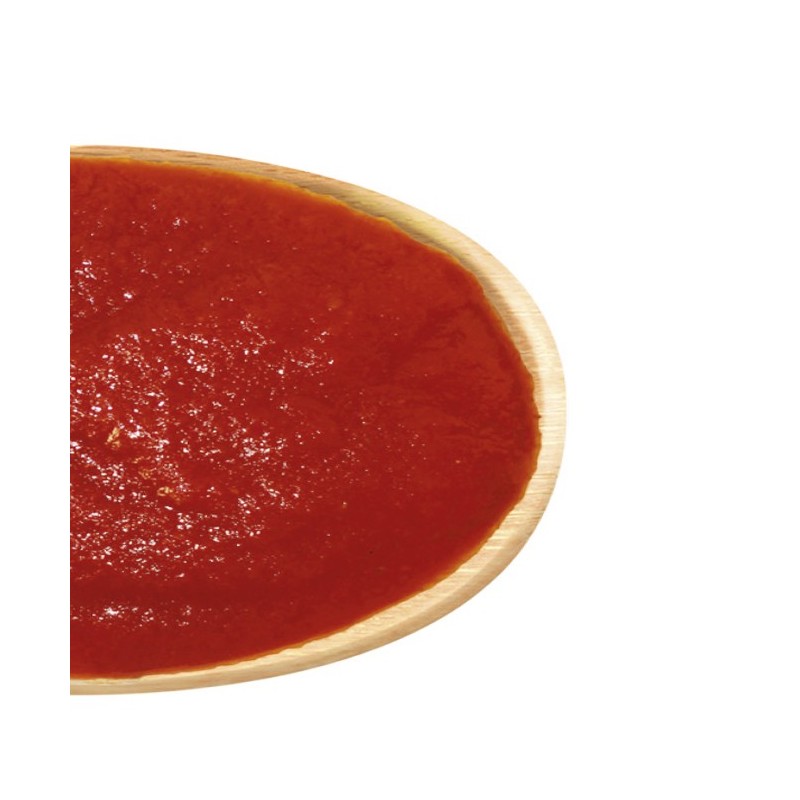 Elaborado a partir de las mejores variedades de tomate de la huerta, todo ello frito con aceite de oliva virgen extra y sazonado con azúcar y sal. Su textura es ideal como base para pizzas caseras.