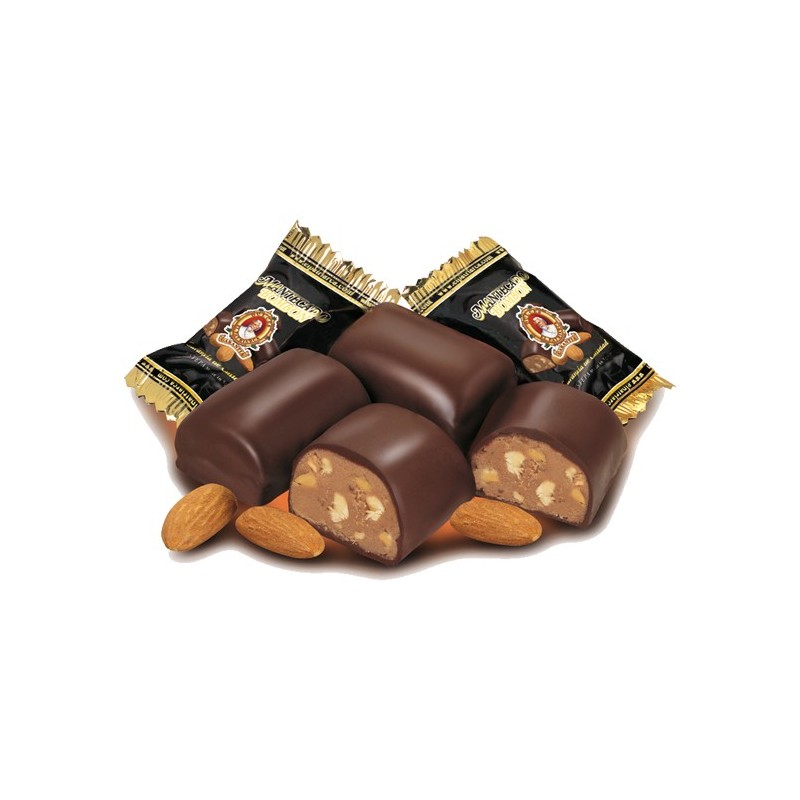 Mantecados elaborados artesanalmente con el mejor cacao, relleno de almendras seleccionadas y recubierto de un exquisito chocolate. Deliciosos.