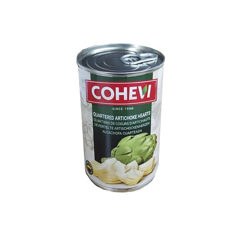 Excelentes alcachofas cuarteadas de categoría primera en bote de medio kilo.